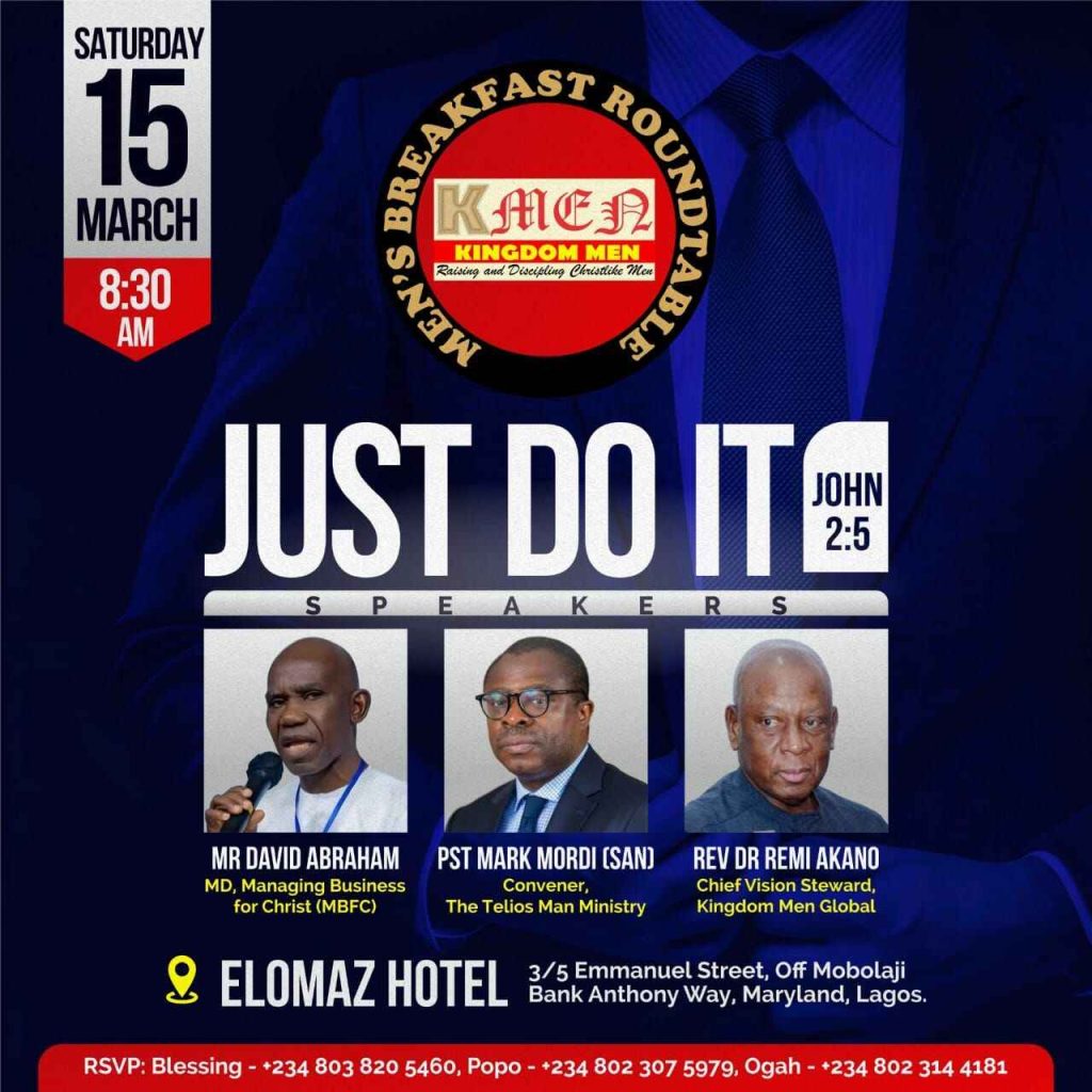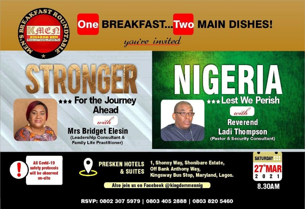 The sessions first held in Lagos in 2009 are usually lively and life-changing. Watch out there may be a Men’s Breakfast Roundtable holding near you soon.